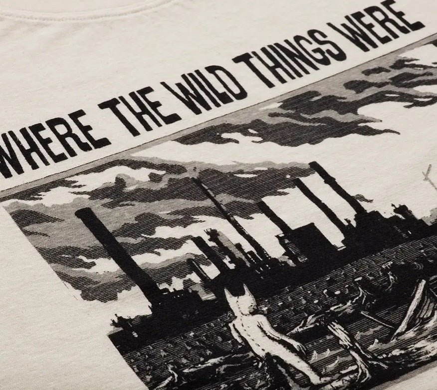 Inspired by Maurice Sendak’s wonderful book ‘Where The Wild Things Are’, THTC’s new design ‘Wild Things’ is a bleak but very accurate prediction of where we are headed if we continue our plight of deforestation, industrialisation and globalisation.