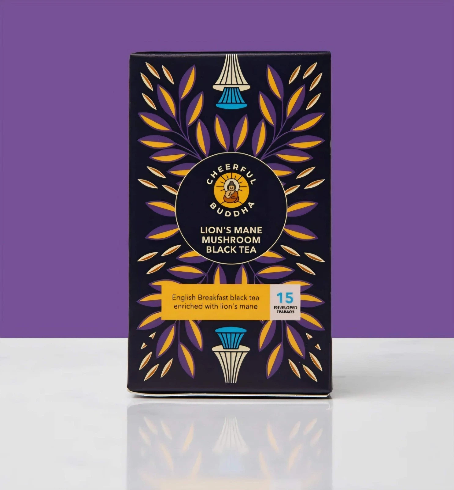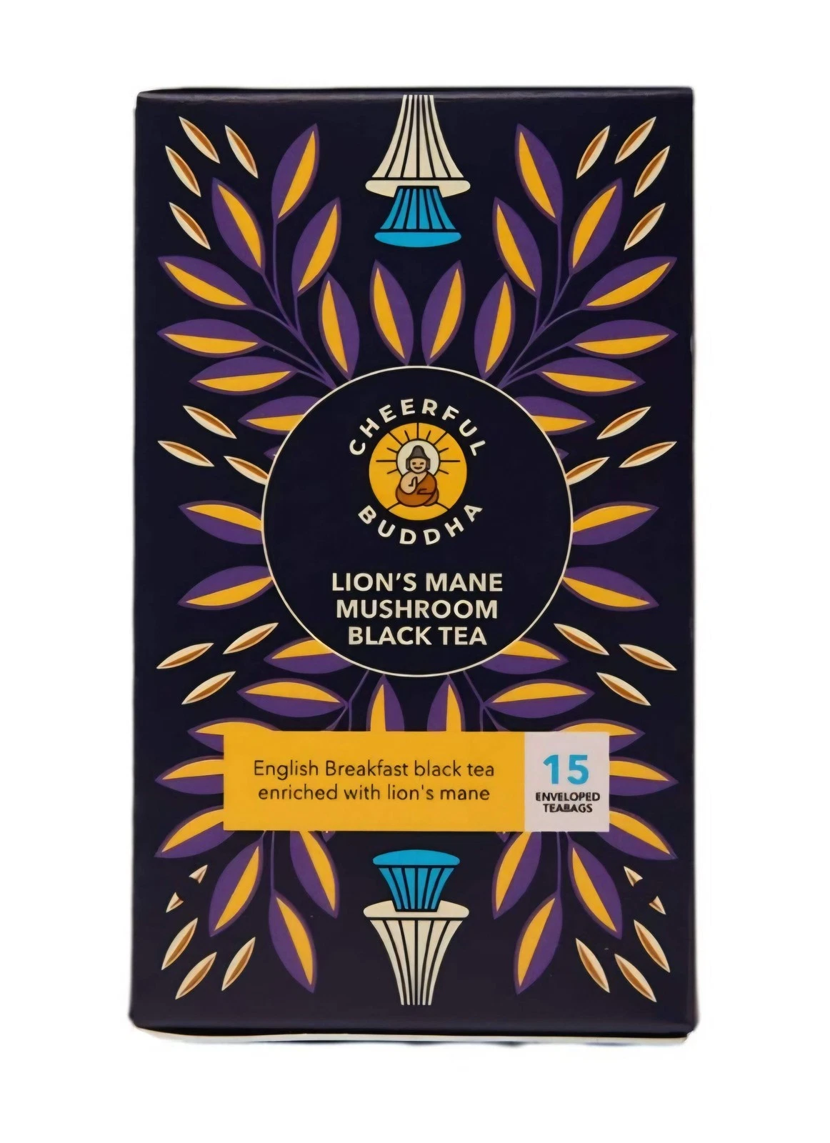 Lions mane mushroom English breakfast Black tea by cheerful buddha.